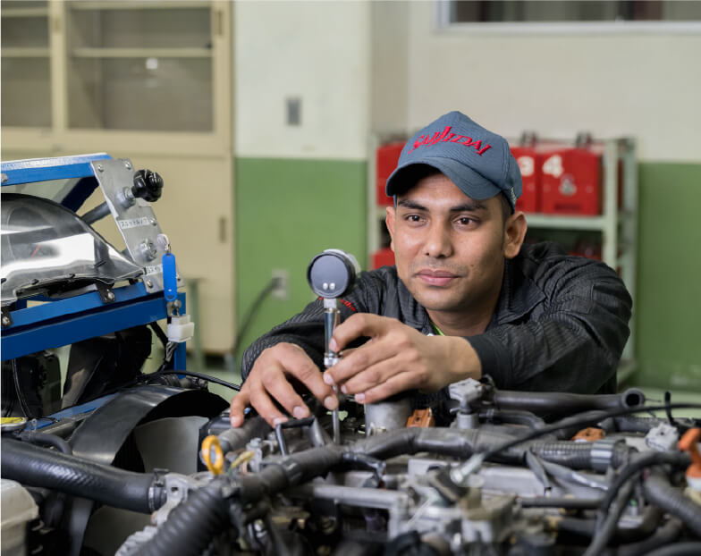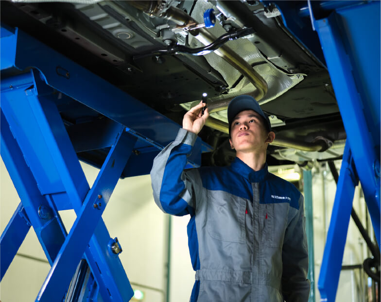 メーカーにとらわれず、あらゆる幅広い自動車整備に対応できる技術を習得。