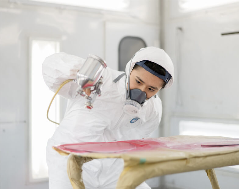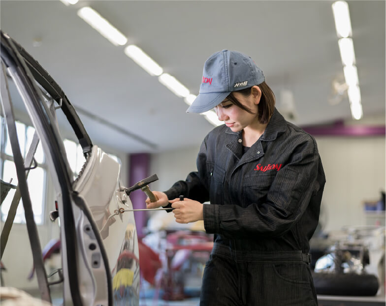 「東京オートサロン」への出展を目標に、板金・塗装だけでなくFRPや発泡ウレタン成形などの特殊技術も習得。多様なニーズに対応できる整備士を育成します。