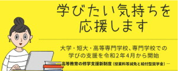 本校は、修学⽀援新制度(授業料等減免と給付型奨学⾦)の対象校です。「令和元年9⽉20⽇(⾦)公表」