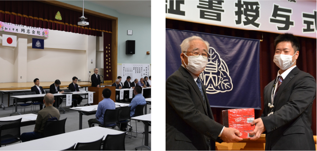 また、同窓会の⼦⼥⼊学の際の祝い⾦贈呈式、新同窓⽣への⼊会説明と整備⼠試験激励などの活動をしております。特に、⺟校と同窓⽣のつながりを⾼めるための活動に⼒を⼊れています。